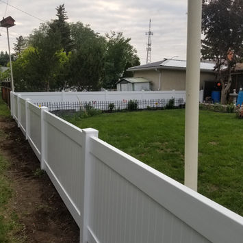 What do You Specialize in?We specialize in no dig fencing products, including vinyl, ornamental, and sound barrier fencing. All products are installed using a hydraulic post driver to install 2 3/8" galvanized steel posts, to a minimum of 4' into the ground. This is the most superior method of installation and offers the highest possible wind load rating, ensuring your fence will withstand the harshest Saskatchewan winds. The finishing materials are then fastened to the steel posts, using specialized collars and fasteners.